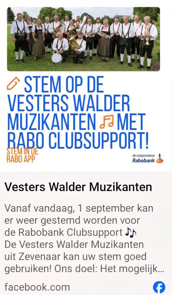 Hartelijk dank voor het stemmen op de Vesters Walder Muzikanten.